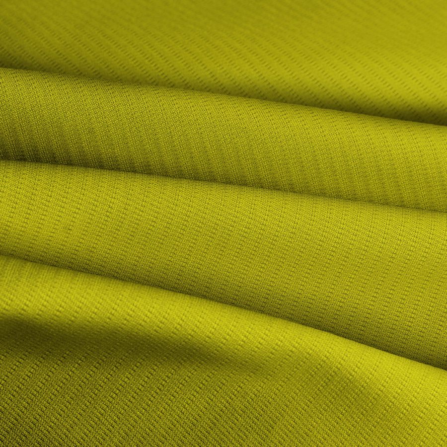 La tela base es el Tejido Técnico Transpirable - Fresh, compuesta por 100% poliéster, con un gramaje de 135 gr/m2 y un ancho de 150 cm. El color liso impreso es de un Amarillo Plátano intenso, con un CMYK de 21 6 94 0. Este color simboliza el optimismo, la felicidad y la energía, pero también la creatividad y la originalidad. El amarillo se combina perfectamente con otros colores como el negro, el blanco, el gris y el azul oscuro.