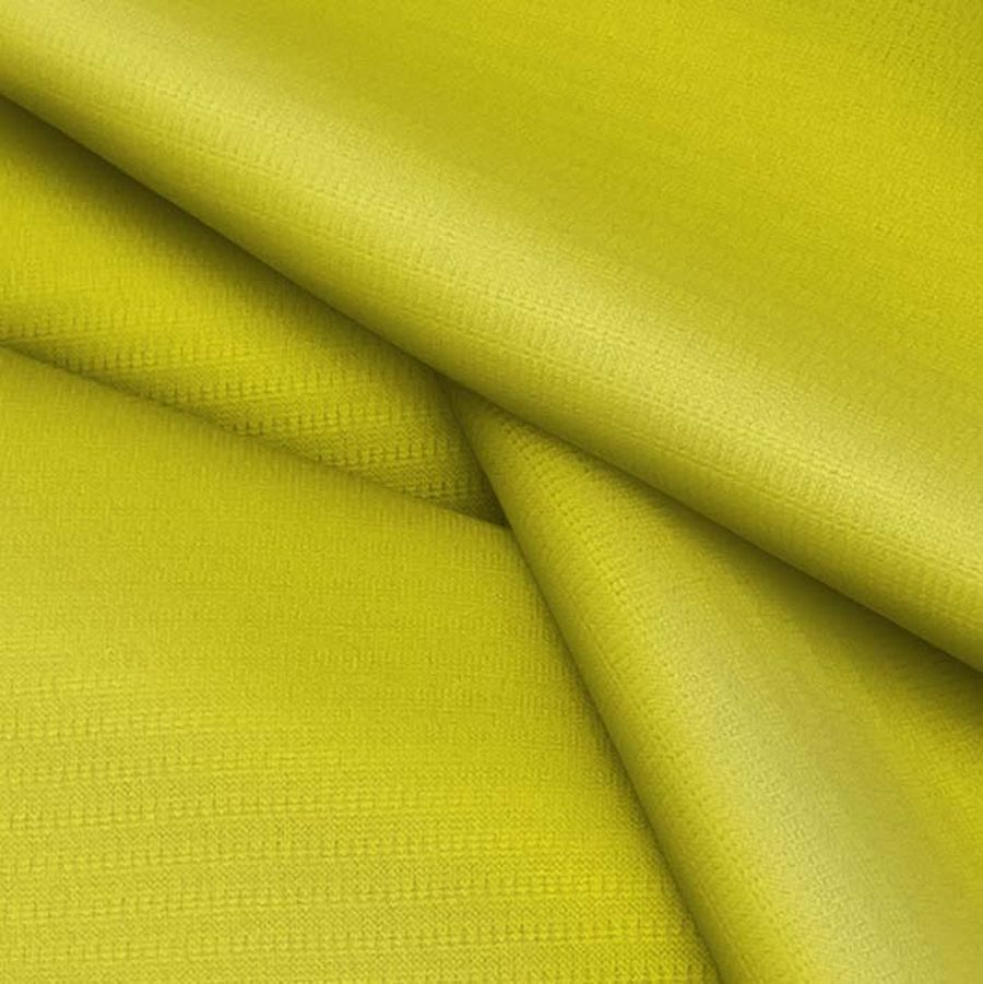 El Tejido Técnico Transpirable - Fresh es una tela de poliéster de 135 gr/m2 con una anchura de 150 cm. El color liso elegido para esta tela es un verde ácido, cuyo CMYK es 27 15 97 2. Este color brinda un toque fresco y vibrante a la tela base. Combinado con colores como el negro, blanco y gris, el verde ácido resulta ideal en prendas deportivas o accesorios que quieran destacar.