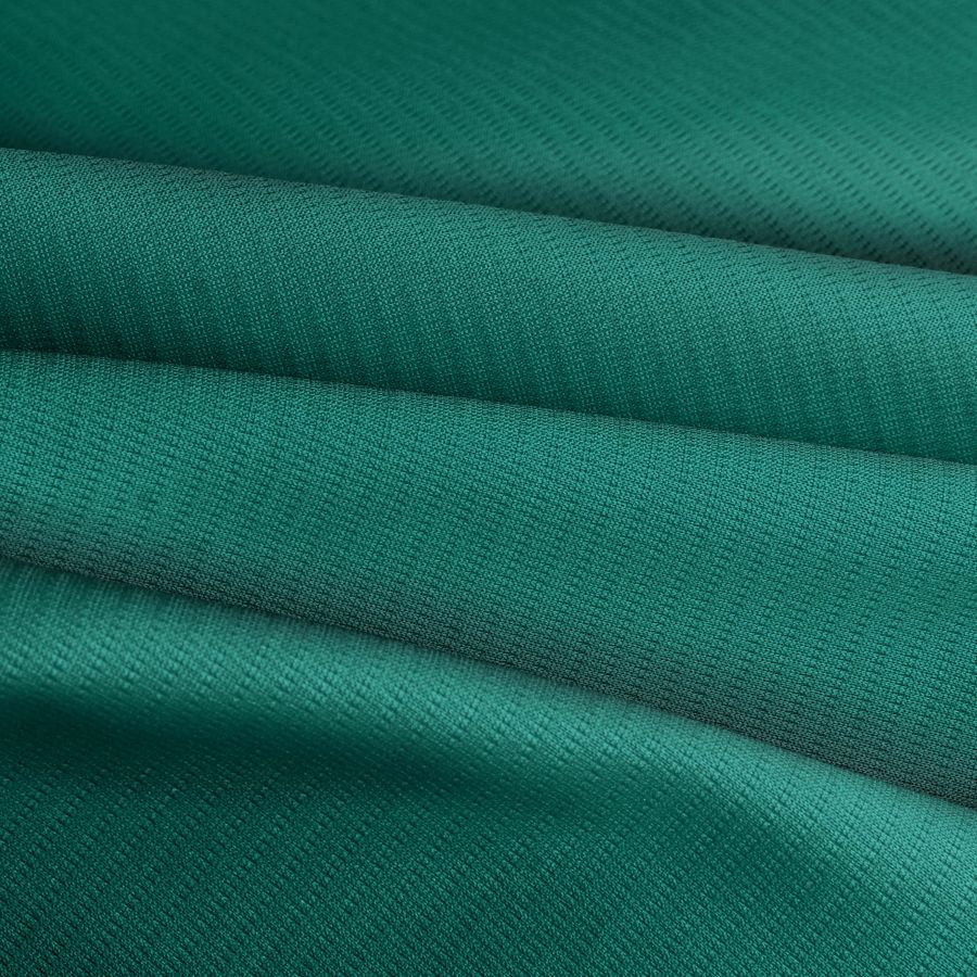 El tejido técnico transpirable - Fresh, de composición 100% poliéster, cuenta con un gramaje de 135 gr/m2 y un ancho de 150 cm. En cuanto a su color liso impreso, podemos encontrar una tonalidad verdosa denominada verde mar profundo, cuyo CMYK está compuesto por tinta cyan en un 89%, tinta magenta en un 36%, tinta yellow en un 65%, y tinta negra en un 33%. Este color secundario transmite sensaciones de frescura, serenidad y tranquilidad, ideal para prendas deportivas, principalmente para el ámbito del running. Además, este color puede combinarse perfectamente con tonalidades neutras, como el blanco y el negro, o bien con tonalidades complementarias, como el rosa fucsia y el naranja.