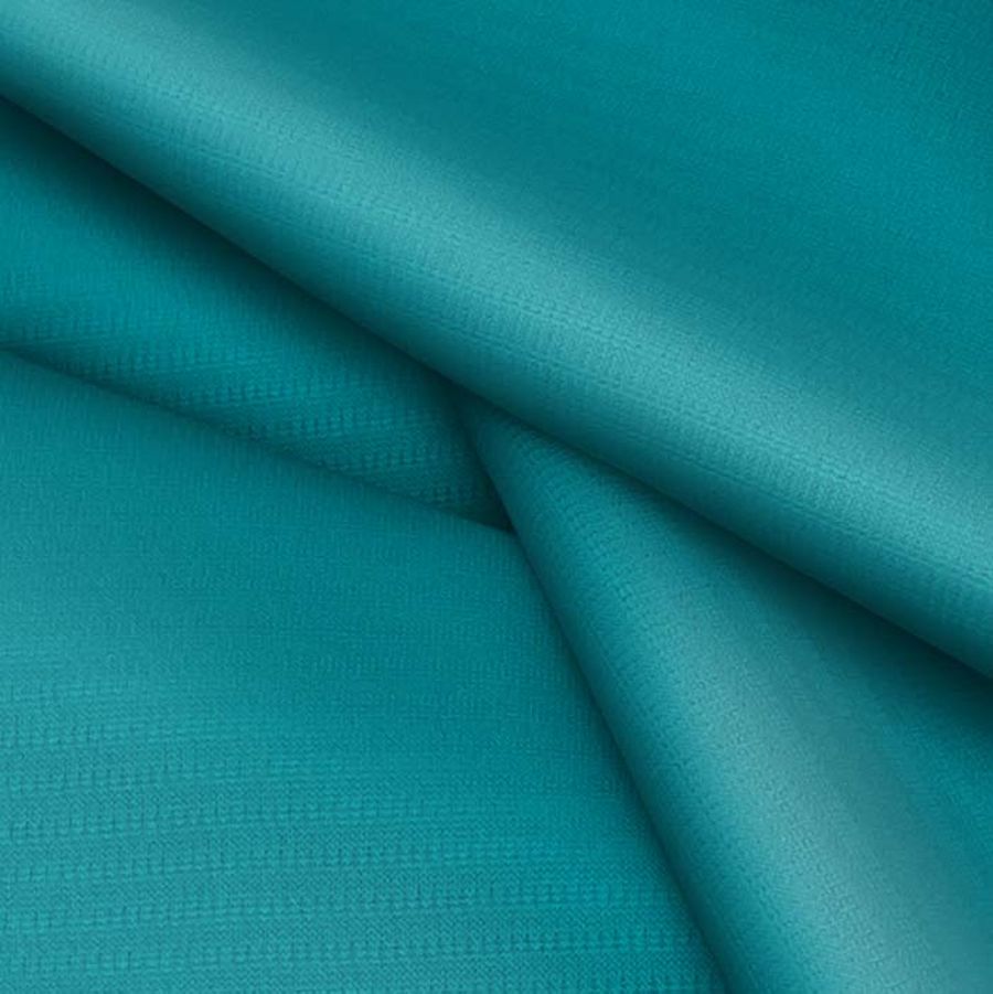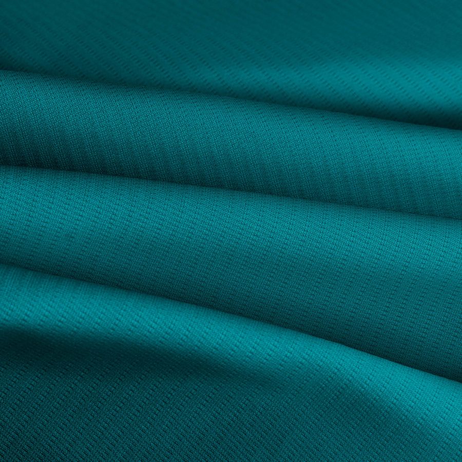 La tela base es el Tejido Técnico Transpirable - Fresh, compuesta por 100% poliéster con un gramaje de 135 gr/m2 y un ancho de 150 cm. El color liso impreso es un verde azulado con el CMYK de 85 31 42 17. Este color secundario transmite frescura y claridad, evocando la naturaleza y la calma. Combina perfectamente con tonos más claros como el blanco o el amarillo pálido, así como con tonos más oscuros como el gris o el negro.