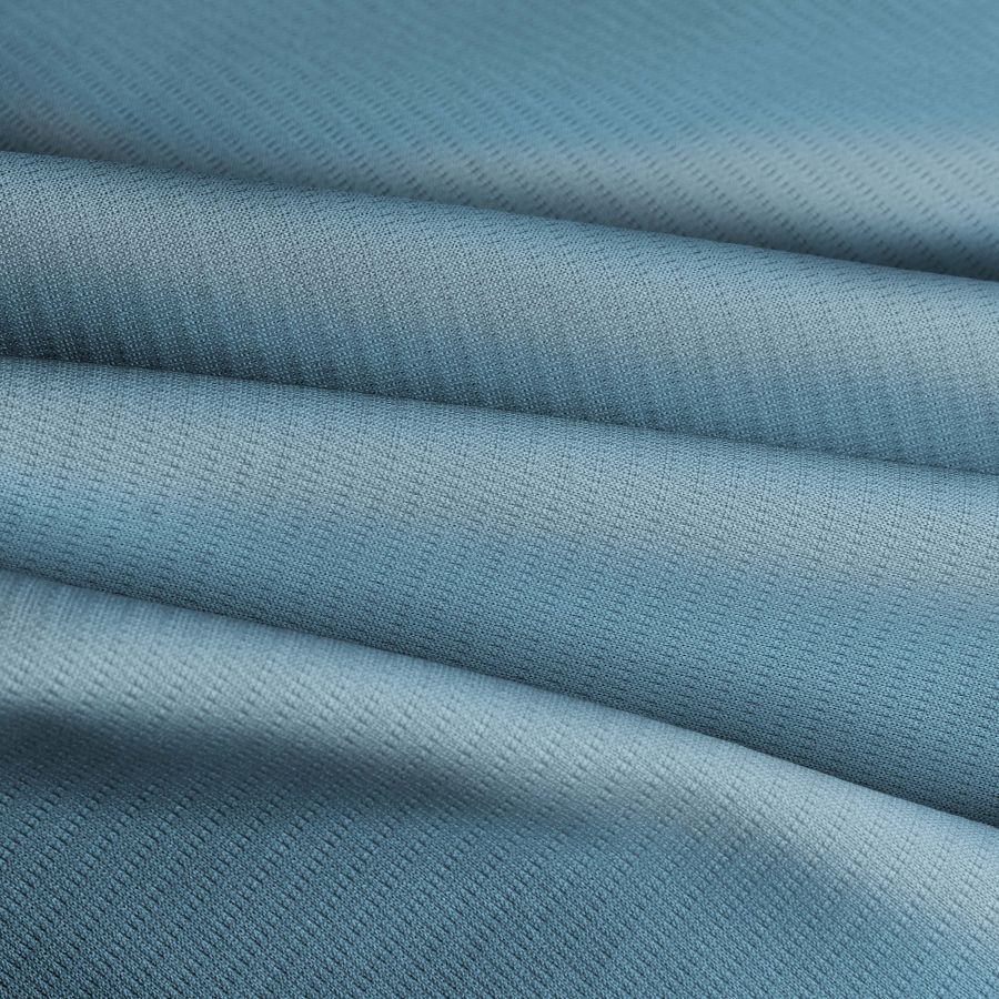El Tejido Técnico Transpirable - Fresh es una tela de alta calidad compuesta por 100% poliéster, con un gramaje de 135 gr/m2 y un ancho de 150 cm, ideal para su uso en prendas deportivas. Su color base es blanco y, en este caso, se presenta con un color liso impreso en azul vaquero, cuyo código CMYK es 51 11 8 0, resultado de la combinación de las tintas Cyan, Magenta y Yellow. Este color secundario evoca la sensación de calma y tranquilidad que produce la naturaleza en su estado más profundo. Además, combina perfectamente con tonos neutros y se relaciona con el amarillo verdoso que aporta vitalidad y energía.