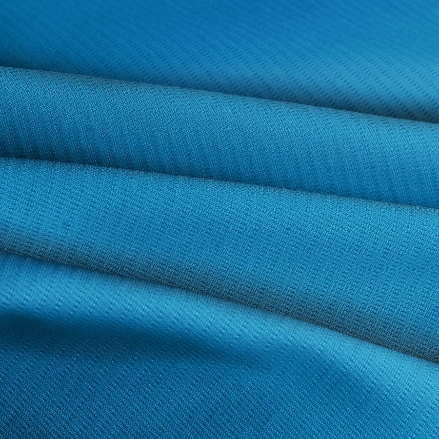 La tela base, Tejido Técnico Transpirable - Fresh, es un tejido técnico 100% poliéster con un gramaje de 135 gr/m2 y un ancho de 150 cm. El color liso impreso es un tono azul hiedra definido por un CMYK de 87 46 10 1, con una combinación predominante de cian y magenta. Dicho color combina especialmente bien con tonos grises y verdes, aportando una sensación fresca y natural. El tejido está impreso en una sola cara por impresión digital textil.