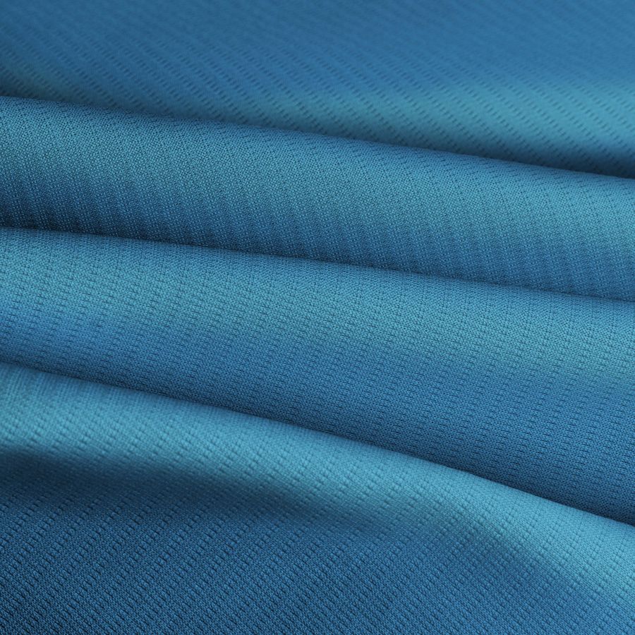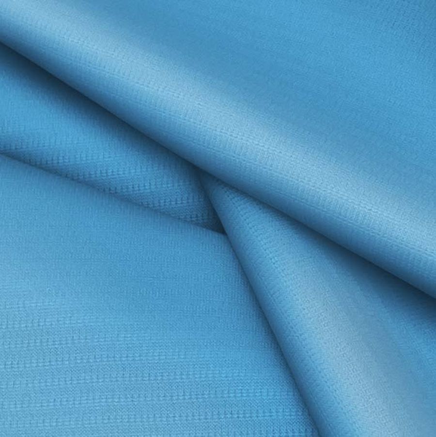 La tela base, Tejido Técnico Transpirable - Fresh, está compuesta al 100% de poliéster, con un gramaje de 135 gr/m2 y un ancho de 150 cm. El color liso impreso en este tejido es Azul Windows, con una combinación de tintas CMYK de 71 30 2 0, lo que resulta en un tono azul claro con matices suaves de verde y gris. Este color combina perfectamente con tonos neutros como el blanco y el gris, así como con colores más vivos como el rosa y el amarillo.