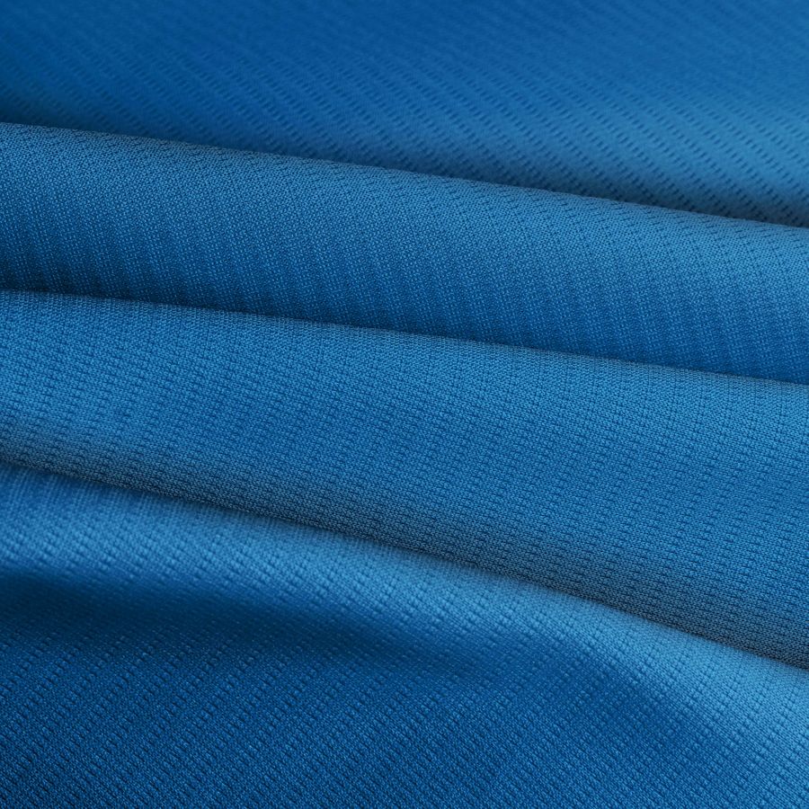 La tela base de este tejido es el Tejido Técnico Transpirable - Fresh, de composición 100% POLIÉSTER, con un gramaje de 135 gr/m2 y un ancho de 150 cm. El color liso impreso es Azul zafiro, que se obtiene a través de la mezcla de las tintas Cyan, Magenta, Yellow y Black, en un CMYK de 96 66 13 2. Este color tiene un significado simbólico de tranquilidad y armonía, aunque técnicamente su principal atributo es su alta saturación y vivacidad. El Azul zafiro combina especialmente bien con tonos neutros, como el blanco, el gris o el negro, para dar un toque de frescura y elegancia a cualquier prenda.