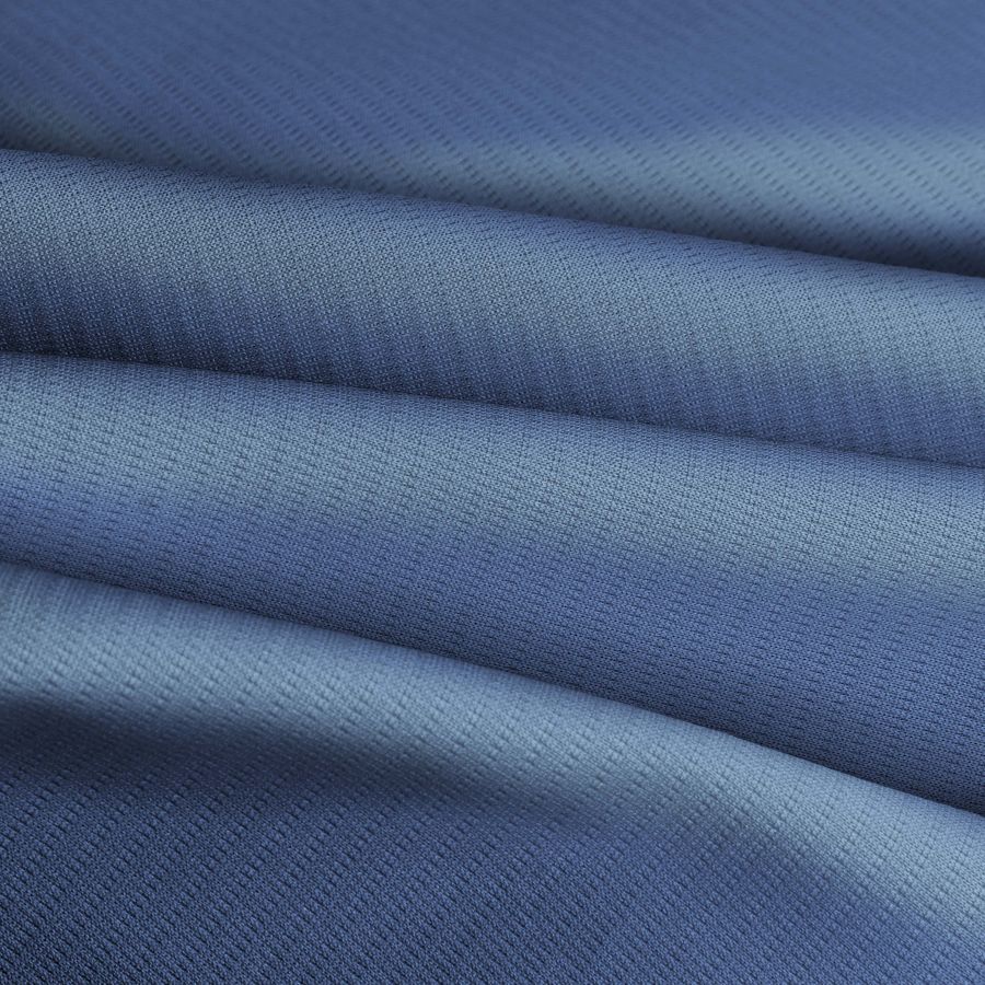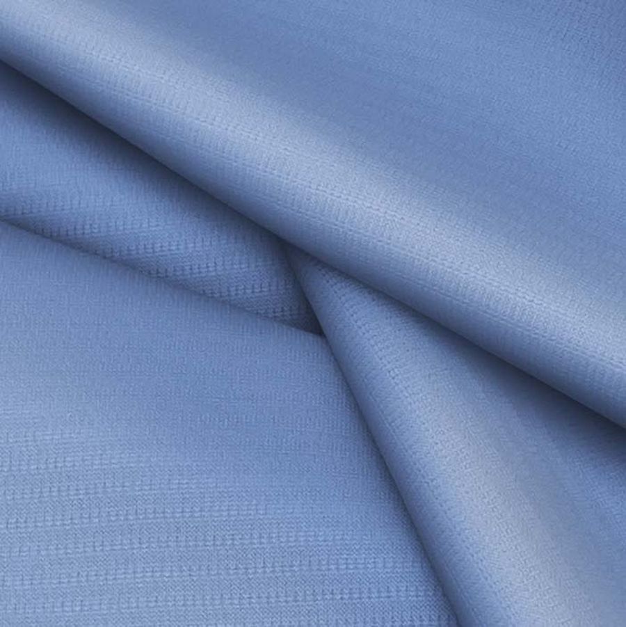 La tela base es un Tejido Técnico Transpirable - Fresh, compuesta por 100% poliéster, de 135 gr/m2 y con un ancho de 150 cm. El color liso impreso en esta tela es una combinación de azul y azul celeste, con un CMYK de 65 45 5 0. Este color secundario, que evoca tranquilidad y frescura, combina perfectamente con tonos neutros como el blanco y el gris, así como con colores pastel como el rosa y el amarillo.
