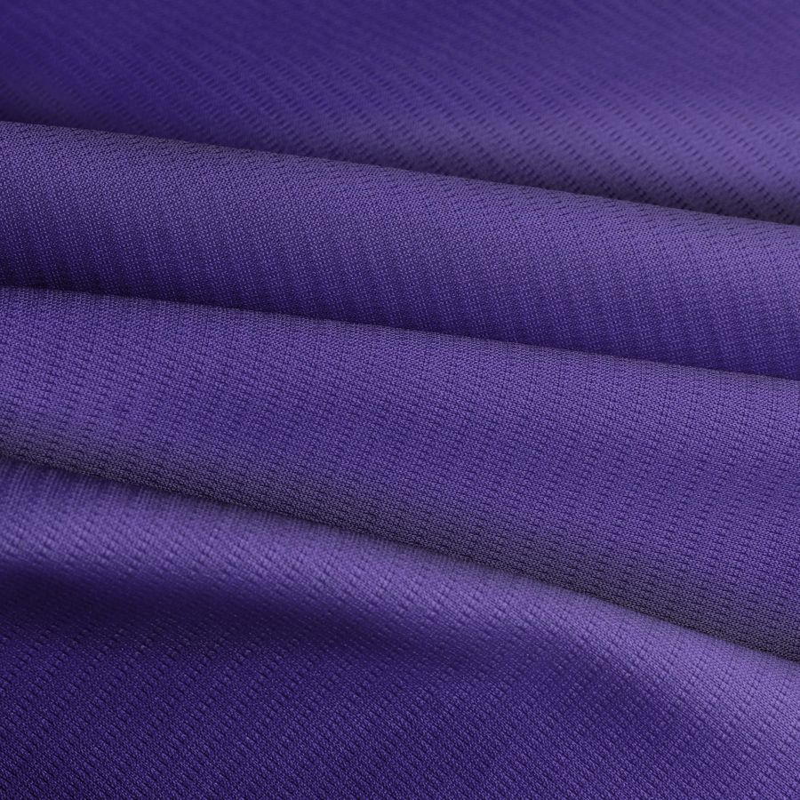 El tejido técnico transpirable - Fresh es un tejido técnico de poliéster con textura elástica y transpirable. El color liso impreso en la tela es un vibrante tono de morado, conocido como monstruo morado, con una composición de tinta CMYK de 95 100 16 5. Este color secundario combina perfectamente con tonos amarillos, verdes y azules, creando un efecto de contraste vibrante y elegante.