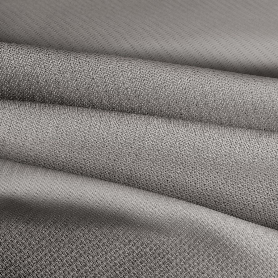 La tela base es el Tejido Técnico Transpirable - Fresh de 100% poliéster con un gramaje de 135 gr/m2 y un ancho de 150 cm. Su color liso impreso es de un tono Gris Plata pálido que se conforma a través de una combinación de tintas, siendo Cyan: 28, Magenta: 25, Yellow: 27 y Key: 4, con un CMYK de 28 25 27 4. Este color secundario simboliza la elegancia y la sofisticación, y combina perfectamente con otros colores más intensos como el azul, el verde o el rojo, así como otros tonos más sutiles como el blanco o el negro. Es importante mencionar que la tela está impresa con el color liso a una sola cara por impresión digital textil, logrando una excelente definición y claridad sin pérdida de calidad.
