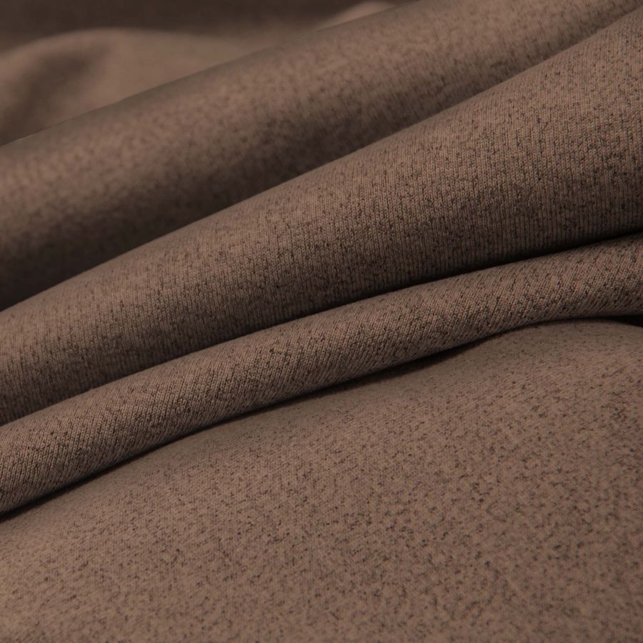 La tela está impresa con el color a una sola cara por impresión digital textil, permitiendo una alta definición y duración del estampado. En cuanto a las características generales, la tela base presenta una textura visual jaspeada y opaca, con acabado transpirable ideal para prendas deportivas y de moda. Por su lado, el Marron Oso café se presenta como un color sólido y uniforme, resistente a la decoloración y de gran versatilidad en su combinación con otros tonos.