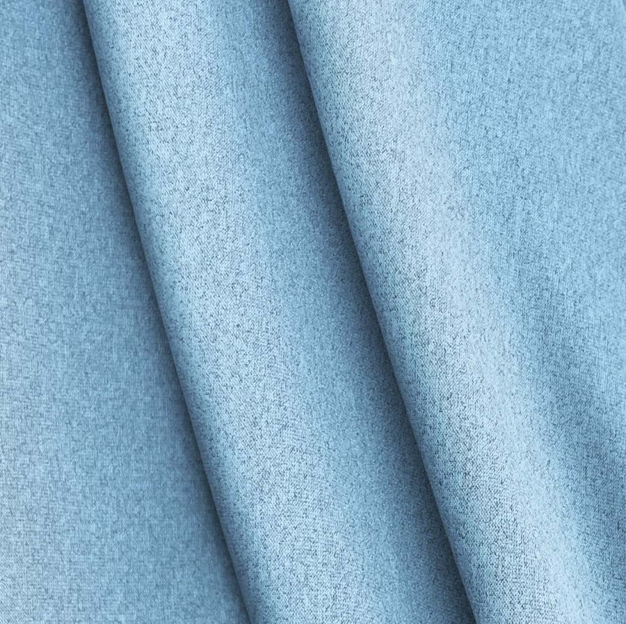 En cuanto a las características de la tela base y del color liso, destacamos la textura jaspeada y opaca de la tela base, así como su acabado transpirable. Por su parte, el color liso Azul Iceberg tiene una tonalidad fría y sofisticada, que se combina especialmente bien con tonalidades grises y blancas, lo que le da un toque elegante a cualquier prenda.
