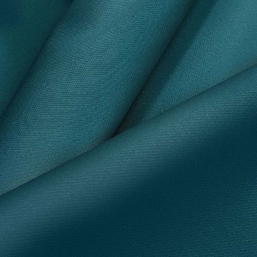 La tela base es la Tela Cortavientos Impermeable - Target, un tejido técnico compuesto al 100% de poliéster con un gramaje de 116 gr/m2 y ancho de 145 cm. El color liso impreso es un verde profundo con matices de teal, cuyas tintas CMYK son 96, 58, 50, 50. Este color combina muy bien con tonos tierra, blancos y azules claros, lo que lo hace perfecto para prendas de invierno y deportivas. Es importante destacar que la tela está impresa con el color liso a una sola cara por impresión digital textil.