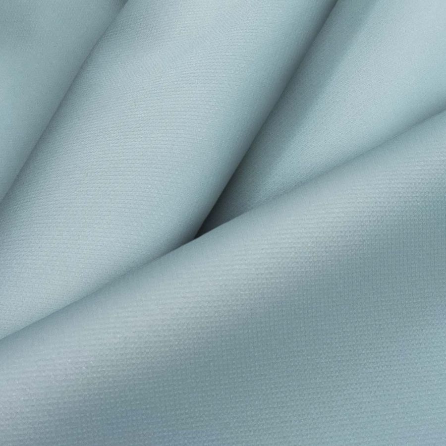 El color de la tela base es Azul CadetBlue, compuesto por una mezcla de tinta Cyan (48), Magenta (22), Yellow (25) y Black (3), representando una gama cromática fría y elegante que combina bien con tonos neutros como gris y blanco, así como con otros tonos de azul y verde. La tela está impresa con el color liso en una sola cara mediante impresión digital textil, lo que implica que el color no penetra en la fibra, sino que se adhiere a la superficie.