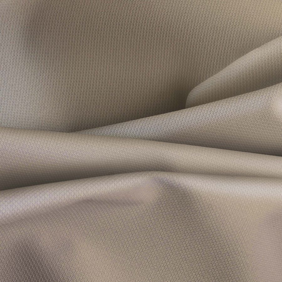 La tela base es la Tela Cortavientos Impermeable - Target, de tipo Tejido Técnico, con una composición del 100% POLIÉSTER y un gramaje de 116 gr/m2. Su ancho de tela es de 145 cm y se presenta en un color liso impreso en formato SUBLIMACIÓN (POLIÉSTER), con un CMYK de 15 20 36 2 que se traduce en un tono Crudo-Bronceado. Este color transmite la sensación de calidez y elegancia. Además, el Bronceado combina perfectamente con tonos tierra, pero también con colores como el azul o el verde.