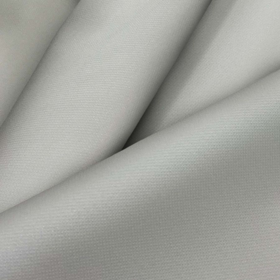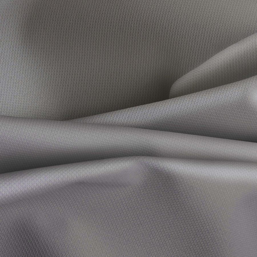 La tela base es la Tela Cortavientos Impermeable - Target, un tejido técnico compuesto 100% por poliéster con un gramaje de 116 gr/m2 y una anchura de 145 cm. Su acabado impermeable la hace ideal para prendas deportivas, chubasqueros, chaquetas y plumíferos de invierno. El color liso impreso es una combinación de gris y verde salvia, con un CMYK de 36 28 33 8 y una textura delgada al tacto.