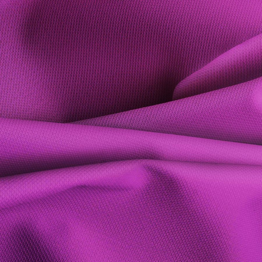 La tela base es la Tela Cortavientos Impermeable - Target, una tela técnica compuesta 100% de poliéster con un gramaje de 116 gr/m2 y una anchura de 145cm. El color liso impreso de esta tela es un morado o púrpura, con un CMYK de 46 95 1 0. Este color secundario es símbolo de la creatividad, la sabiduría, la intriga y la nobleza. Este tono se combina muy bien con colores neutros como el blanco, el negro, el gris y también puede ser acentuado por colores más brillantes como el rojo o el rosa.