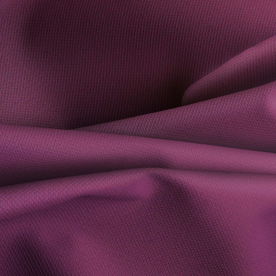 La tela base de la Tela Cortavientos Impermeable - Target es un tejido técnico, compuesto al 100% de poliéster y con un gramaje de 116 gr/m2. Su ancho es de 145 cm y se utiliza sobre todo para prendas de invierno tanto masculinas como femeninas y también para chubasqueros deportivos. El color liso impreso, que se obtiene con la tecnología de sublimación (poliéster), es un tono morado berenjena con una combinación de la tinta cyan (50%), magenta (87%), yellow (39%) y black (47%). Este color secundario tiene un tono oscuro, apagado y profundo, con cierto aire de elegancia y sofisticación. Además, combina especialmente bien con tonos cálidos como los marrones o los beiges, y también con tonos fríos como los grises o los azules.