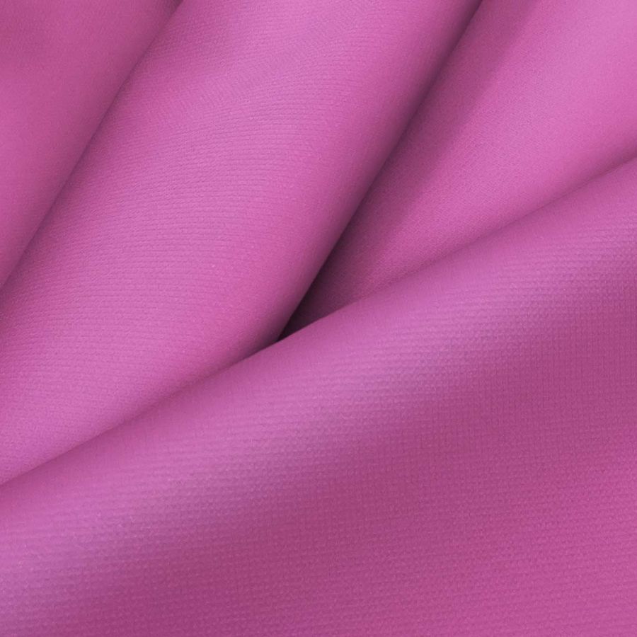 El tejido está impreso con el color liso a una sola cara por impresión digital textil, lo que significa que el diseño se imprime directamente en la tela en lugar de teñirla. La tela base tiene un acabado impermeable, lo que significa que puede proteger contra la lluvia y otros elementos externos. Además, tiene una textura delgada y un tacto suave al contacto con la piel.
