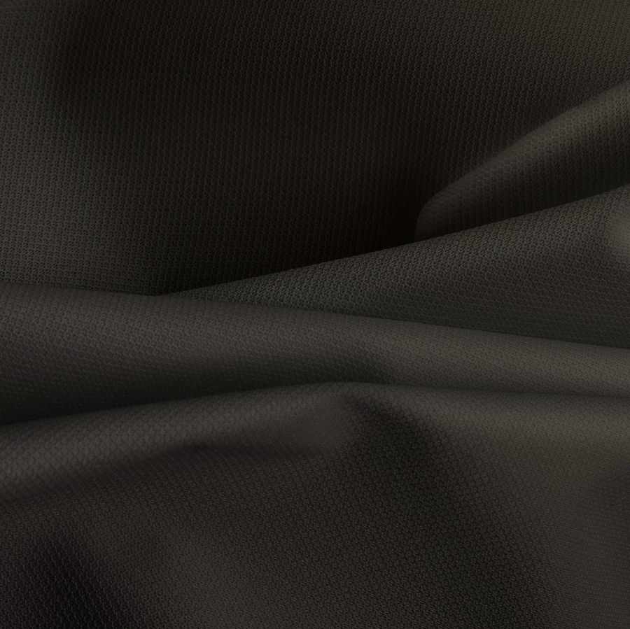 La Tela Cortavientos Impermeable - Target es un tejido técnico, compuesto de 100% poliéster con un gramaje de 116 gr/m2, un ancho de 145 cm y una impermeabilidad que garantiza su uso en prendas de deporte y moda para hombre, mujer y niños. El color liso impreso en la tela es el negro medianoche, reflejado en un CMYK de 71 64 76 83, lo que le confiere una tonalidad oscura y profunda.