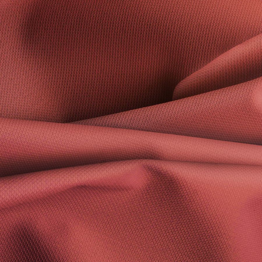 La tela base es la Tela Cortavientos Impermeable - Target, un tejido técnico compuesto por 100% poliéster, con un gramaje de 116 gr/m2 y un ancho de 145 cm. Su acabado es impermeable y posee una textura delgada, con un tacto suave y agradable. Su color liso es un rojo-granate, con una tinta cyan del 27, magenta del 80, yellow del 73 y black del 24, conformando un CMYK de 27 80 73 24. Este color secundario es muy distintivo, evocando la pasión y vitalidad del rojo junto con la sofisticación y elegancia del granate. Combina muy bien con tonos tierra, arena y beige, así como con tonos grisáceos para crear una estética urbana y moderna.