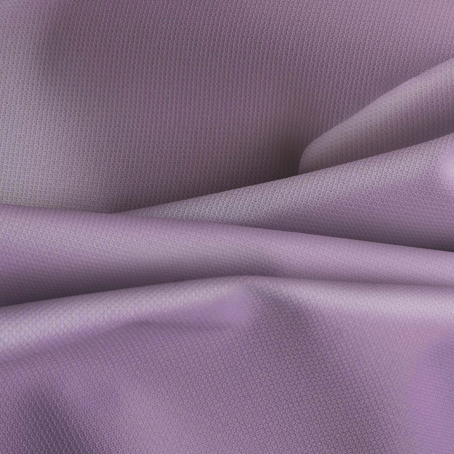 La tela base, la Tela Cortavientos Impermeable - Target, está compuesta por 100% poliéster con un gramaje de 116 gr/m2 y un ancho de 145 cm. Su acabado impermeable la hace ideal para prendas de invierno deportivas o de moda como chaquetas o plumíferos. El color liso impreso es de un intenso tono púrpura llamado Dragón púrpura, con un CMYK de 20, 39, 4, 0. Este color simboliza la creatividad, la nobleza y la realeza. También representa la magia y lo misterioso, y su combinación con otros colores, como el negro, el blanco y el rosa claro, pueden acentuar estos significados.