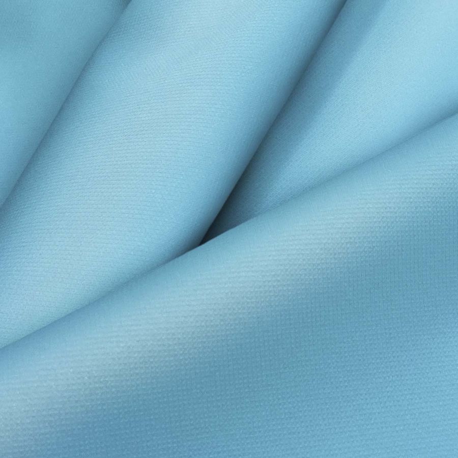 La tela base de este tejido cortavientos impermeable es 100% poliéster con un gramaje de 116 gr/m2 y una anchura de 145 cm. El color liso impreso en la tela es Azul Iceberg, con valores de CMYK de 56 13 6 0. Este color secundario se describe como un tono fresco y relajante que transmite sensaciones de tranquilidad y armonía. Complementa muy bien con otros colores como el blanco, el gris, el negro, el verde y el rosa.