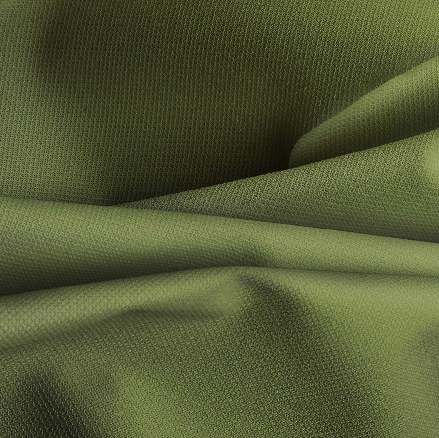La tela base es el Tejido Técnico Target, una tela cortavientos impermeable con una composición del 100% poliéster, un gramaje de 116 gr/m2 y una anchura de 145 cm. El color liso impreso sobre esta tela es un tono verde ejercito, que se refleja en su CMYK de 62 41 88 34. Este color secundario simboliza la naturaleza y la fuerza, y combina perfectamente con colores tierra, blancos y marrones.