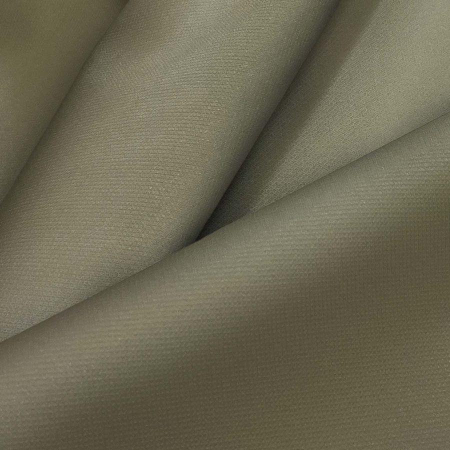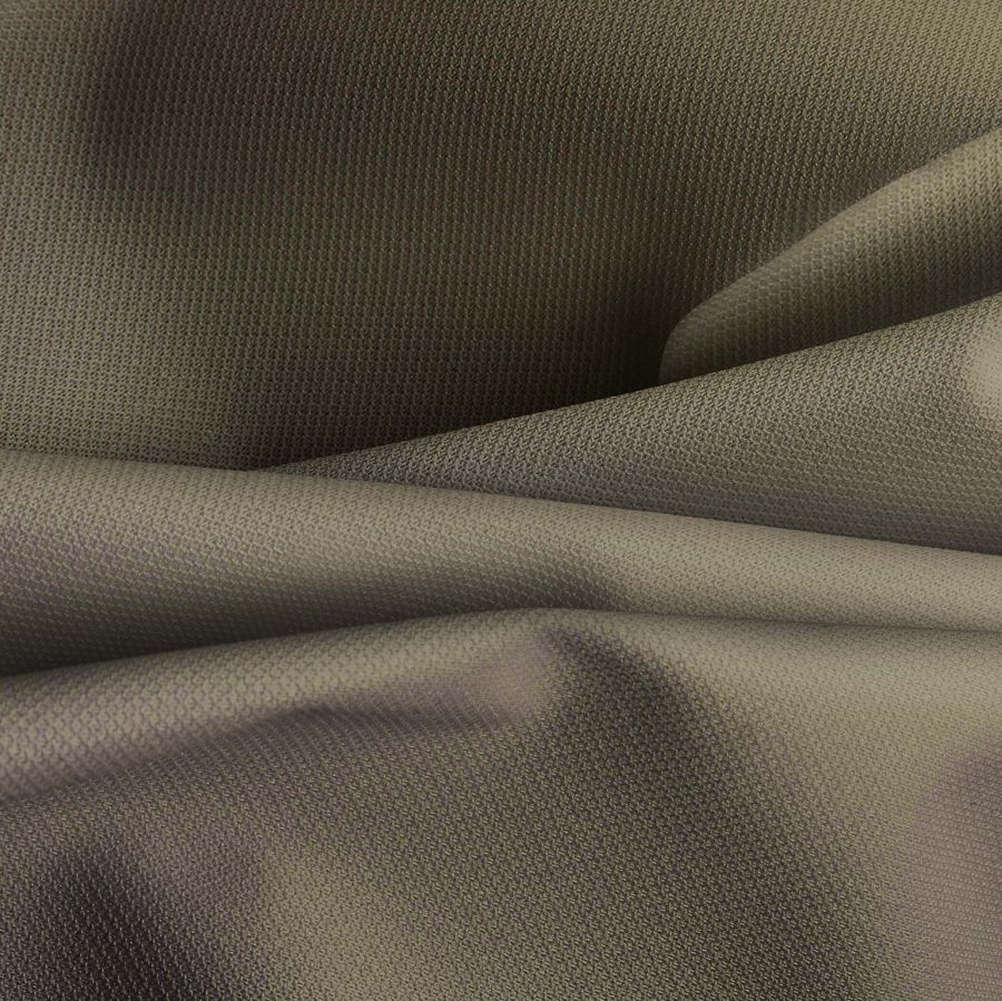 Las características generales de la tela incluyen su acabado impermeable y su textura delgada al tacto. En cuanto al color liso, su pigmentación es de alta calidad y resistente al desgaste, lo que asegura una larga duración. Además, su tonalidad marrón-moca es perfecta para otoño e invierno y se combina particularmente bien con los tonos oscuros y tierra.