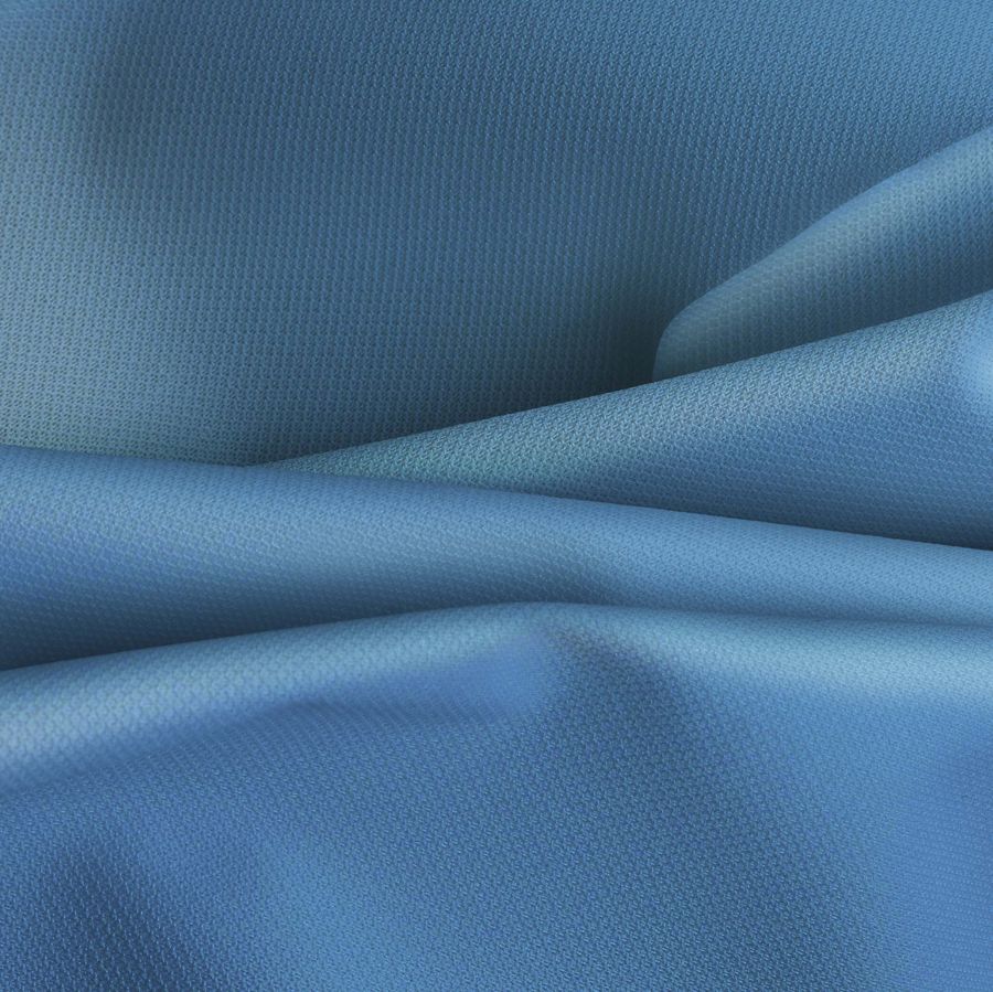 La tela base es Tela Cortavientos Impermeable - Target, una tela técnica de 100% poliéster con un gramaje de 116 gr/m2 y un ancho de 145 cm. El color liso impreso es Azul seda, con un contenido de 60% de tinta cyan, 20% de tinta magenta, 1% de tinta yellow y 0% de tinta black, con un valor CMYK de 60 20 1 0. El color seda se caracteriza por ser un azul profundo y elegante, que en armonía con tonos como el blanco o el negro, se convierte en un color ideal para la moda de invierno, así como para prendas deportivas. La tela está impresa con el color liso a una sola cara por impresión digital textil.