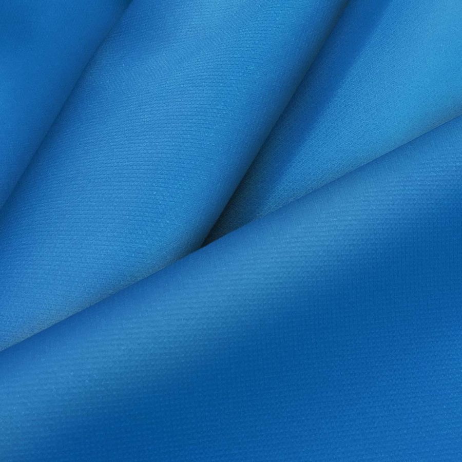 La tela base es la Tela Cortavientos Impermeable - Target, compuesta por un tejido técnico de 100% poliéster con un gramaje de 116 gr/m2 y un ancho de 145 cm. El color liso impreso tiene una tonalidad de azul celeste, con valores CMYK de 92 59 4 0, lo que indica una alta presencia del tono cian en la mezcla. Este color secundario proyecta elegancia, calma y tranquilidad, y representa el cielo y el mar. Se combina especialmente bien con tonalidades grises, blancas y verdes, pero también es muy versátil y confluye con muchos otros colores.