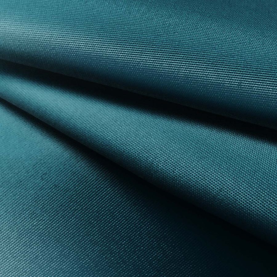 La tela base es la microfibra reciclada Biarritz, compuesta por 100% de poliéster, con un gramaje de 110 gr/m2 y un ancho de 147 cm. El color liso impreso es de un verde teal profundo, con un valor CMYK de 96 58 50 50. Este color se caracteriza por transmitir tranquilidad y serenidad, al mismo tiempo que evoca la frescura y el equilibrio. Combina especialmente bien con tonos crudos, beiges, grises y taupes.
