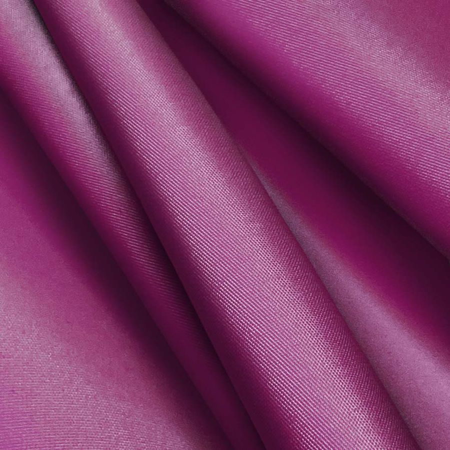 La tela base es Microfibra Reciclada - Biarritz, compuesta por 100% poliéster con un gramaje de 110 gr/m2. Su ancho es de 147cm y se caracteriza por ser una tela delgada, rígida al tacto y suave al mismo tiempo. Su color liso impreso es de un intenso morado berenjena, con una proporción de tinta cyan del 53, tinta magenta del 99, tinta amarilla del 25 y tinta negra del 18, representando un CMYK de 53 99 25 18. El color secundario es un tono de rosa oscuro, que combina perfectamente con el morado berenjena, y también con el blanco, negro y tonos de azul y verde.