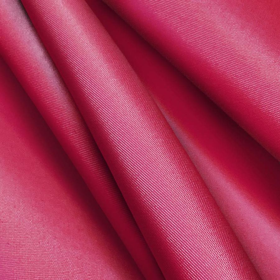 La tela base utilizada es la Microfibra Reciclada - Biarritz, una microfibra de 100% poliéster con un gramaje de 110 gr/m2 y un ancho de 147 cm. El color liso impreso en esta tela es un rosa intenso con un contenido CMYK de 20, 100, 52, 12. Este color combina de manera excelente con tonos neutros como el blanco y el gris, así como con tonos más brillantes como el naranja y el amarillo.