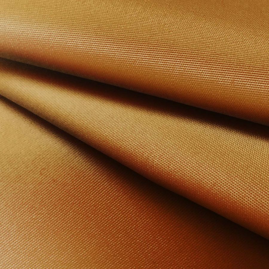 La tela base es la Microfibra Reciclada - Biarritz, con un gramaje de 110 gr/m2 y un ancho de 147 cm. El color liso impreso es un marrón Sillín Marrón, cuyo CMYK es 32 63 100 35. Este color se describe como un tono terroso y cálido, que simboliza la tierra y la estabilidad, y que combina bien con otros tonos tierra, verdes y rojos oscuros. La tela está impresa con este color liso a una sola cara por impresión digital textil.