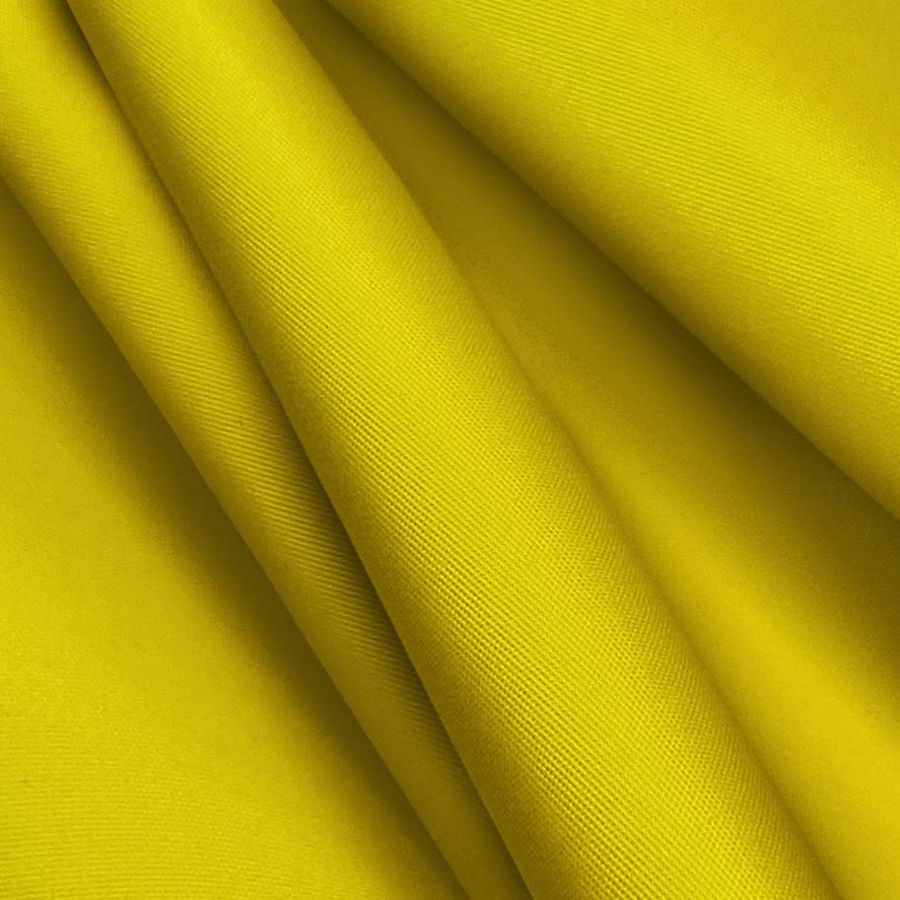 La tela base es Microfibra Reciclada - Biarritz, 100% poliéster con un gramaje de 110gr/m2 y un ancho de 147cm. El color liso impreso es un hermoso tono amarillo dorado brillante, cuyo CMYK es 15 25 97 3. Este se complementa bien con tonos azules y verdes, brindando un contraste elegante y vibrante.
