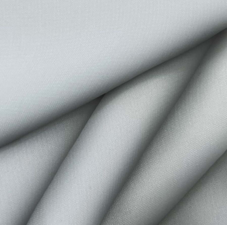 La tela base de este tejido es la Gasa Transparente - Salamanca, compuesta por 100% POLIÉSTER, con un gramaje de 28 gr/m2 y una anchura de 150 cm. El color liso impreso es de un Gris con un acabado en Plata metálica, que se obtiene a través de la combinación de las tintas Cyan (34), Magenta (21), Yellow (23) y Black (2) con un CMYK de 34 21 23 2. El color plata metálica crea un efecto lujoso y sofisticado en la tela base transparente, lo que hace que sea ideal para creaciones de alta costura y lencería fina. Además, el color plata se combina particularmente bien con tonos fríos como el blanco, el negro y el azul, así como con otros tonos plateados.