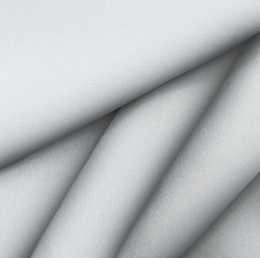 La tela base de esta descripción es la Gasa Transparente - Salamanca, compuesta en su totalidad por poliéster y con un gramaje de 28 gr/m2. Su ancho es de 150 cm y su color liso impreso es Gris Agua con los siguientes valores en CMYK: 12, 6, 5, 0. Este tono de gris tiene un tinte azulado que le proporciona un ambiente fresco y relajante, haciendo que combine muy bien con tonos azules y verdosos.