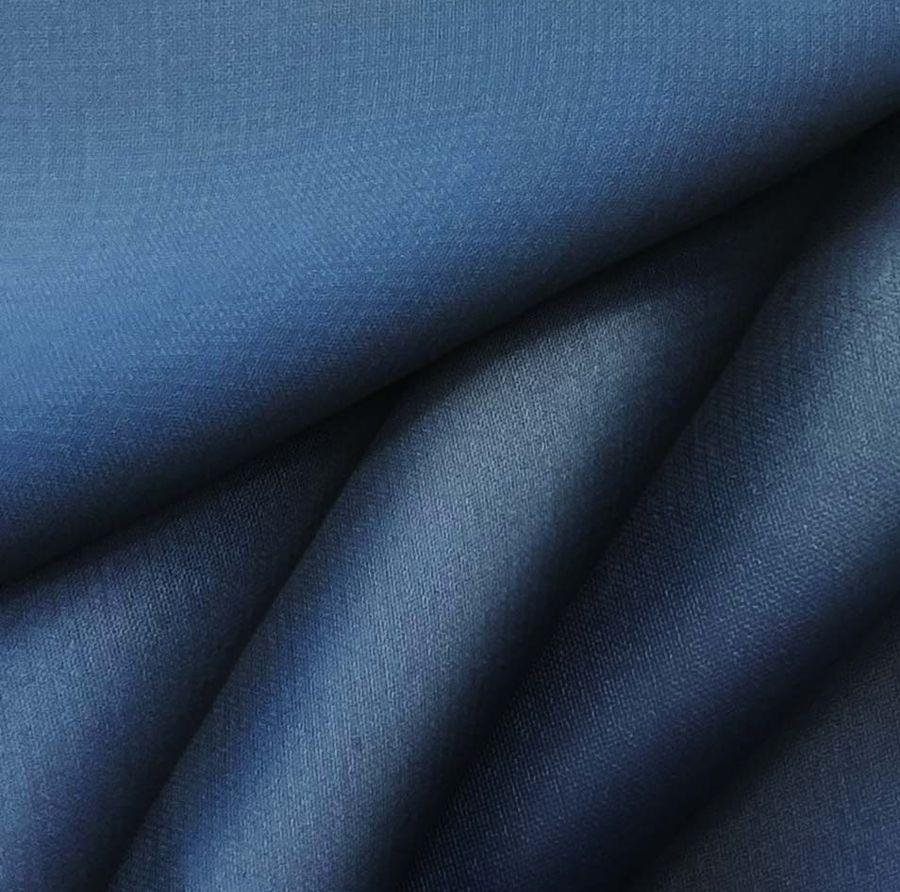 La tela base es Gasa Transparente - Salamanca, con una composición del 100% de poliéster y un gramaje de 28 gr/m2. El color liso impreso es Azul Pizarra oscura, con un CMYK de 100 82 41 37. Este color tiene un tono profundo y oscuro, que transmite elegancia y sofisticación. Se complementa con colores neutros como el blanco y el negro, así como con tonos más claros como el gris claro o el rosa pastel.
