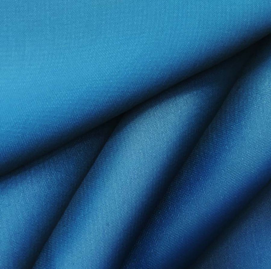 La tela base es la Gasa Transparente - Salamanca, compuesta al 100% de poliéster con un gramaje de 28 gr/m2 y un ancho de 150 cm. El color liso impreso es un impactante Azul zafiro, con un CMYK de 98 67 20 5 y una tecnología de impresión por sublimación. Este color secundario destaca por su tonalidad profunda y luminosa, que evoca la serenidad del mar y la elegancia del zafiro. Su combinación con tonalidades neutras como el blanco, el negro o el gris aporta un contraste sofisticado y moderno.