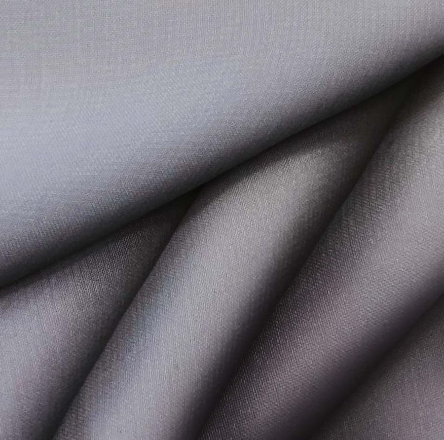 La tela base es la Gasa Transparente - Salamanca, de composición 100% poliéster y gramaje de 28 gr/m2. Su ancho es de 150 cm y su color liso impreso es Gris Carbón, con valores de CMYK de 55 51 39 27. El color resultante es un tono gris oscuro y profundo, que tiende hacia lo sobrio y elegante. Este color secundario combina muy bien con tonos fríos, como el azul claro o el blanco, y también con tonos cálidos, como el beige o el rosa palo.