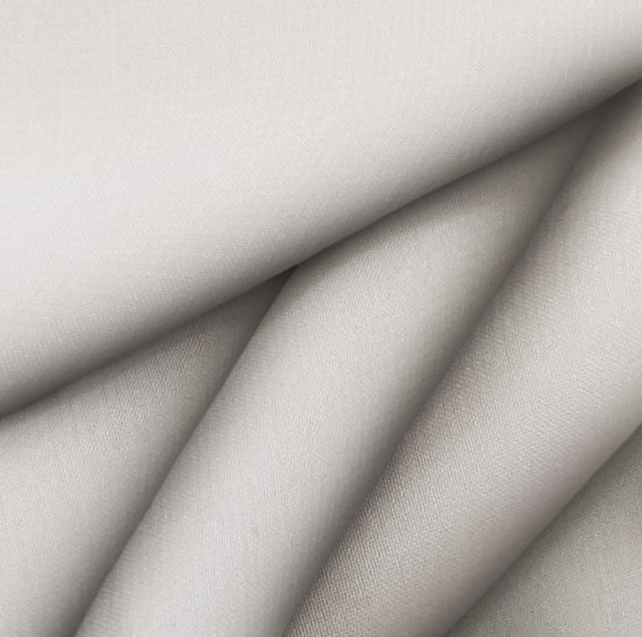 La tela base de esta prenda es Gasa Transparente - Salamanca, compuesta por 100% poliéster, con un gramaje de 28 gr/m2 y un ancho de 150 cm. Está impresa en un color liso crudo con matices de plata pálida, con un CMYK de 12 16 18 0. Este color secundario es una variante del plateado, que simboliza la sofisticación, el glamour y la modernidad. El plateado armoniza bien con otros colores fríos como el azul y el violeta, y se destaca aún más cuando se combina con tonalidades negras. La tela está impresa a una sola cara por impresión digital textil.