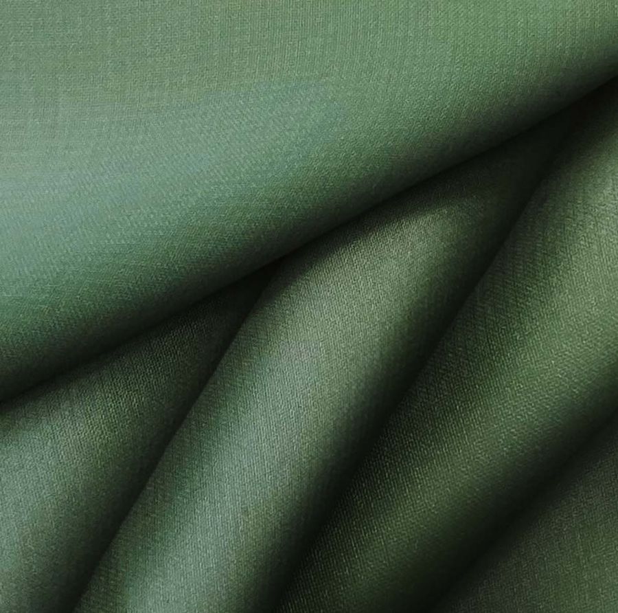 La tela base de este tejido es la Gasa Transparente - Salamanca, compuesta en un 100% por poliéster y con un gramaje de tan solo 28 gr/m2, lo que la hace una tela ligera y delicada. Su ancho es de 150 cm y está disponible en un color liso impreso de verde bosque oscuro, con un CMYK de 75 47 84 51. Este color evoca la naturaleza, la tranquilidad y la estabilidad, y combina muy bien con tonos tierra, beige y marrón claro.