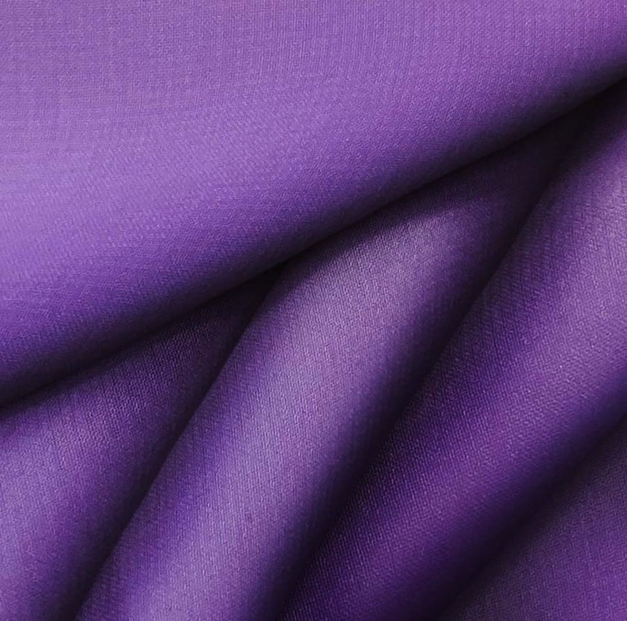La tela base de la que hablamos es la Gasa Transparente - Salamanca, con una composición del 100% de poliéster y un gramaje de 28 gr/m2. El color liso impreso en esta tela es Morado, Índigo, Iris Morado, cuyos valores en CMYK son 82, 100, 11, 3. Este color es un tono profundo y misterioso que simboliza la sabiduría y la introspección. Combina especialmente bien con tonos metálicos, como el oro y la plata, aportando un toque sofisticado y elegante.