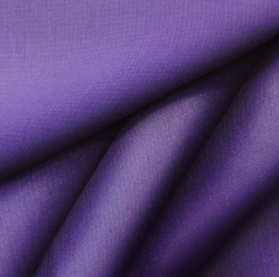 La tela base de este tejido es Gasa Transparente - Salamanca, 100% poliéster y con un gramaje de 28 gr/m2. La tela es de color liso Morado Iris, cuya combinación CMYK es 88 99 20 9. El color secundario de este tejido es un tono morado intenso que evoca elegancia y sofisticación. Combina perfectamente con colores neutros como el blanco, el gris y el negro, así como con tonos pastel como el rosa y el lila.