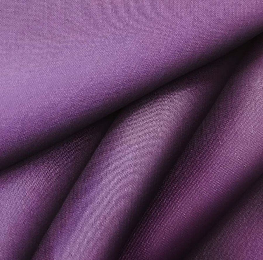 La tela base de este tejido es la Gasa Transparente - Salamanca, de composición 100% poliéster y gramaje de 28 gr/m2. El color liso impreso es de tonalidad Morado oscuro y se ha obtenido mediante el uso de las tintas Cyan (67), Magenta (90), Yellow (30) y Black (23), con un CMYK de 67 90 30 23. Este color se caracteriza por ser intenso y profundo, transmitiendo elegancia y sofisticación. Combina muy bien con otros tonos de la misma gama cromática, como azules oscuros y grises.