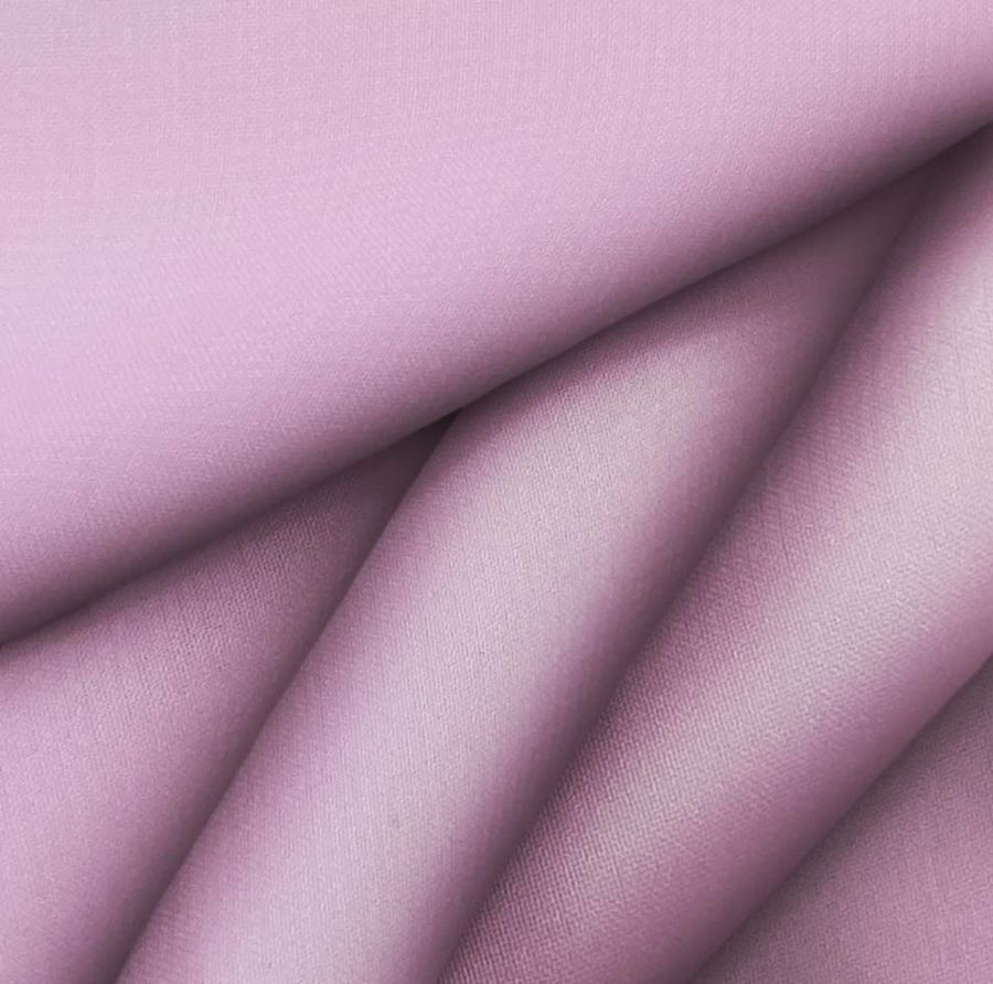 La tela base es la Gasa Transparente - Salamanca, compuesta al 100% por poliéster y con un gramaje de 28 gr/m2. Su ancho es de 150 cm y está indicada para su uso en verano. En cuanto al color liso impreso, es de un rosa-malva profundo con un CMYK de 16 53 5 0, que resulta en un color delicado y suave. Este color secundario combina muy bien con tonos neutros, como el beige o el blanco, y con tonalidades más oscuras como el gris o el azul marino.