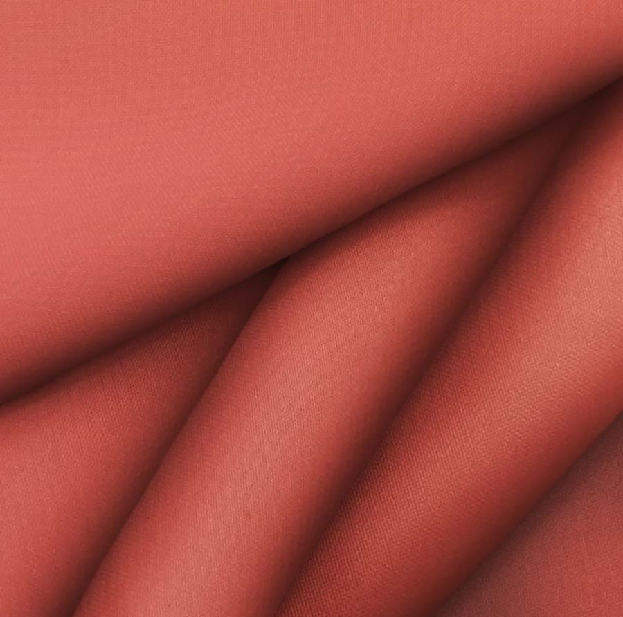 La tela base de este tejido es la Gasa Transparente - Salamanca, compuesta al 100% de poliéster con un gramaje de 28 gr/m2 y una anchura de 150 cm. El color liso impreso es Rojo Toronja con un CMYK de 16 87 84 6. Este tono secundario posee una tonalidad enérgica y vibrante que transmite pasión y vitalidad. El Rojo Toronja combina perfectamente con gamas de verdes, rosas y naranjas, complementando y acentuando la intensidad del color. Es importante destacar que el tejido está impreso con el color liso a una sola cara por impresión digital textil, lo que significa que el color impreso está presente en una sola cara del tejido y no lo impregna por completo.
