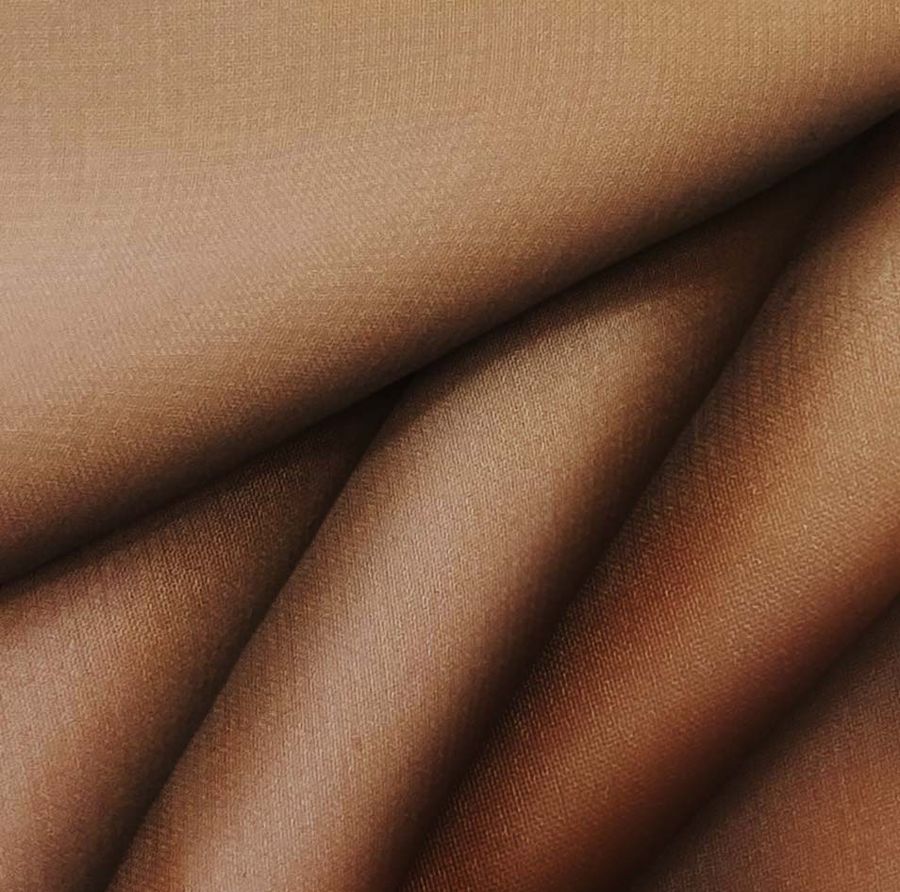 La tela base es la Gasa Transparente - Salamanca, compuesta por 100% POLIÉSTER con un gramaje de 28 gr/m2 y un ancho de 150 cm. El color liso impreso es Marrón Sillín, con un CMYK de 33 67 83 38. El Marrón Sillín es un tono oscuro marrón-rojizo, que evoca la elegancia y la calidez. Este color combina particularmente bien con colores neutros como el beige y el crema, así como con tonos más claros y frescos como el verde menta y el azul celeste.