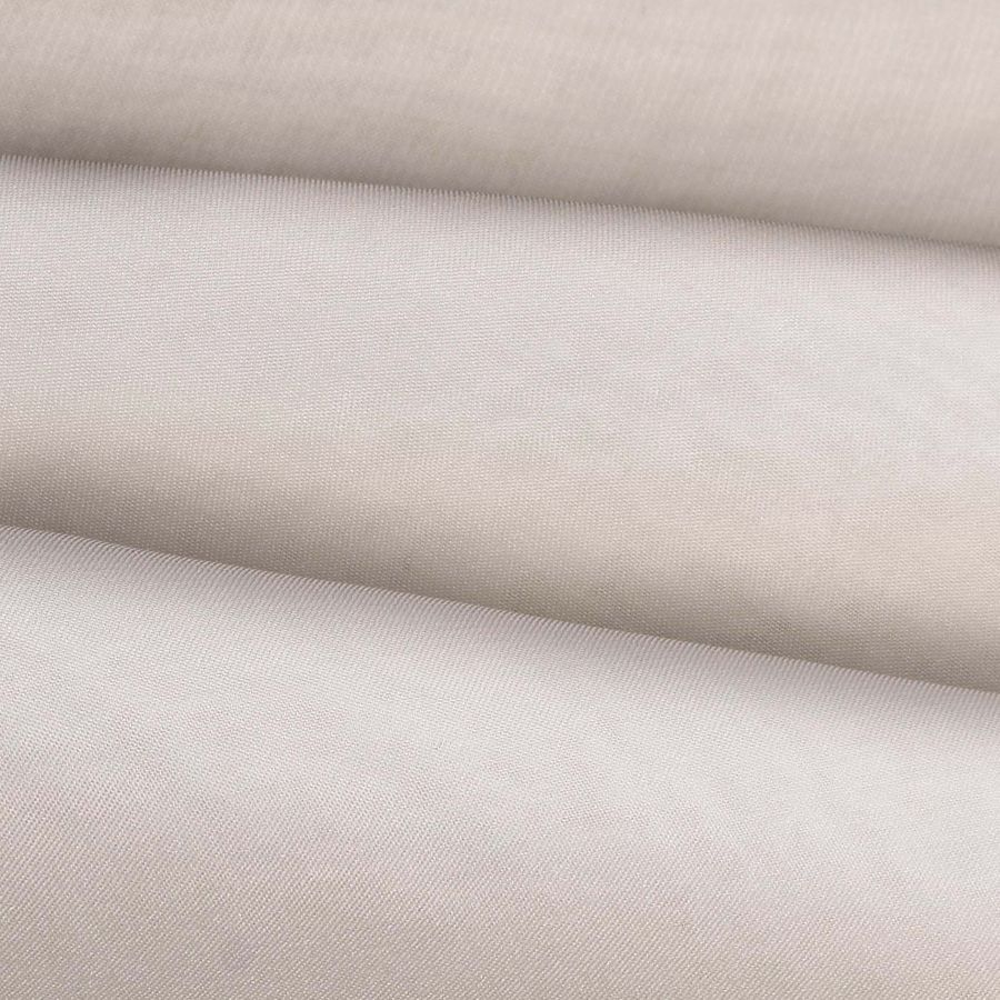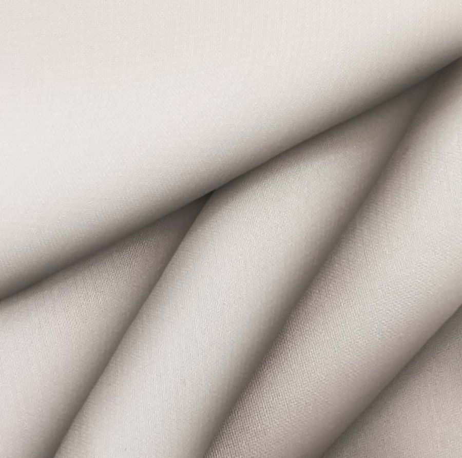 La tela base es Gasa Transparente - Salamanca, de tipo gasa, con una composición de 100% poliéster y un gramaje de 28 gr/m2. Su ancho es de 150 cm y su color liso impreso cuenta con una combinación de 5 de tinta cian, 15 de tinta magenta, 18 de tinta amarilla y 0 de tinta negra, lo que da lugar a un tono crudo con toques de blanco antiguo. El color secundario, el blanco antiguo, se percibe especialmente en la tela, no solo como una luz o un brillo, sino como un tono que se difunde en algunos momentos y que contrasta con la translucidez de la gasa.