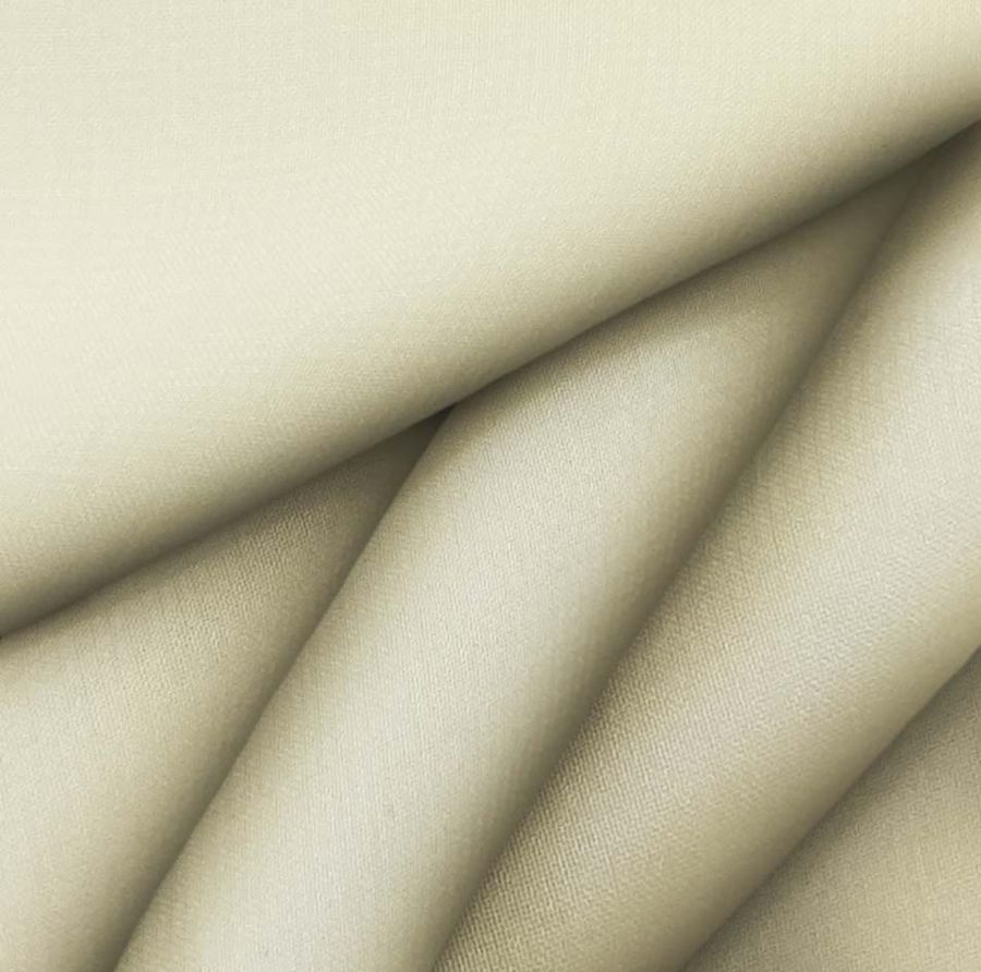 La tela base es la Gasa Transparente - Salamanca, con una composición 100% de poliéster y un gramaje de 28 gr/m2. El color liso impreso en la tela es Crudo/Vainilla, con una combinación de tintas CMYK de 5 cian, 8 magenta, 38 amarillo y 0 negro. Este color secundario presenta un matiz suave y cálido que se complementa perfectamente con tonos naturales como el beige, el marrón y el dorado.