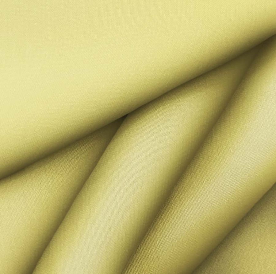 La tela base, Gasa Transparente - Salamanca, es una tela de gasa de composición 100% poliéster, con un gramaje de 28 gr/m2 y un ancho de 150 cm, de color blanco transparente. El color liso impreso es de tonalidad amarilla mostaza, con una combinación de tintas de 6% cian, 11% magenta, 70% amarillo y 0% negro en CMYK. Este tono evoca sentimientos de calidez, creatividad y energía, y combina particularmente bien con tonos tierra, verde musgo y terracota para aportar un toque orgánico y natural.