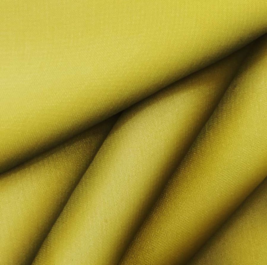 La tela base, Gasa Transparente - Salamanca, es una gasa de poliéster de baja densidad con un peso de 28 gr/m2 y un ancho de 150 cm. El color liso impreso es Amarillo Olivo con un CMYK de 26 30 98 10, que se caracteriza por tener un tono amarillo verdoso cálido y suave, que se asemeja a la tonalidad natural de algunas hojas de olivo. Combina especialmente bien con otros tonos suaves como el blanco, rosado y celeste, aunque también puede combinarse con tonos más vibrantes como el coral y el turquesa.